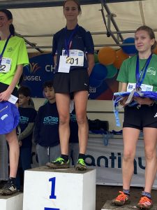 Après un départ maitrisé, elle se retrouve dans un petit groupe de 4. Dès la première descente, Isaure accélère et crée un avantage qui s’avérera définitif. Après 500m de course, elle compte déjà une avance conséquente qu’elle ne cessera d’augmenter. A l’aise sur ce beau parcours, Isaure s’accorde même le luxe d’accélérer dans la dernière ligne droite pour s’imposer aisément avec 40 secondes d’avance.
