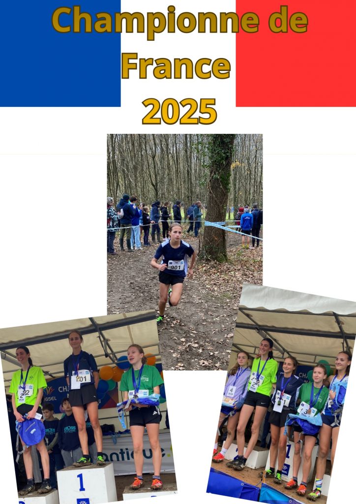 Annoncée favorite après son titre 2024 et ses récentes performances lors des cross départementaux et régionaux, Isaure a tenu son rang lors du championnat National qui s’est tenu le mardi 9 décembre à La Chapelle sur Erdre.