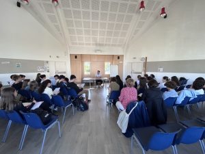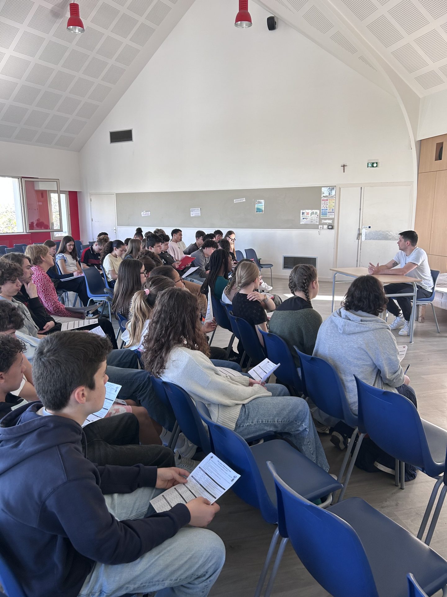 Chaque élève avait préparé ses questions à poser en anglais autour de cet axe. Marius BLANCHARD, assistant coach à l’UFAB (équipe professionnelle de basketball féminin à Angers) s’est prêté au jeu de l’interview et a pu échanger sur l’importance de l’esprit d’équipe, de l’inclusion et de la gestion d’une équipe de basketball.